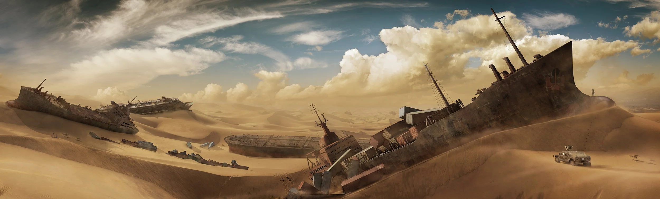 The old ocean became a graveyard of ships, static metal giants where the last survivors could find some supplies to resist the drought. Would it last forever?
